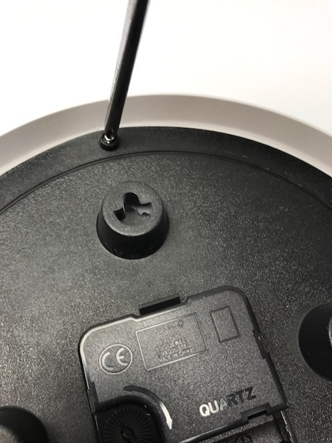Grab your housing and head back inside to reattach the housing to the clock by screwing the screws back into their holes like this.