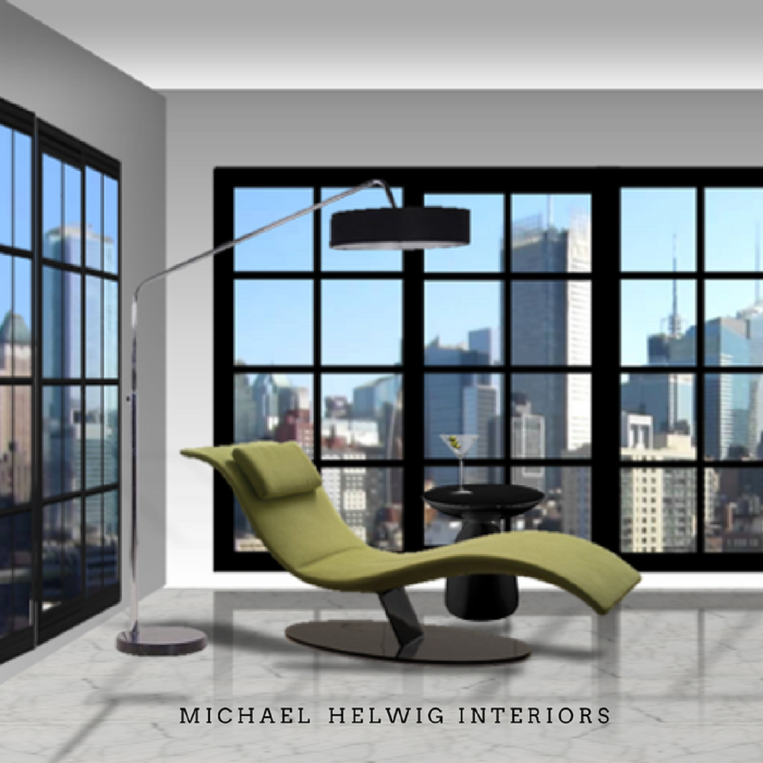 If you’re lucky enough to have a spectacular penthouse view like this one, and you have floor to ceiling windows all around the space, you’re going to have to place a piece or two in front of the windows. Try as you may to avoid this but, sooner or later function will win. Now I’m all for a floating floor plan but, when you have windows all around, (not a bad problem to have), you’re going to have to make a “window wall” into a “wall” to get the room to function right.