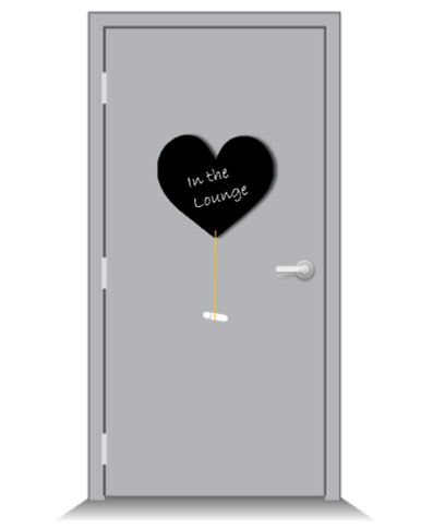 Visit the craft store and head down the isle that has the wood letters and shapes. There are tons of fun marquee style shapes. If you’re good with using power tools you can cut a shape of your own design with a jigsaw. Give it a coat of primer and then top it off with a couple coats of chalk board paint and embellish it with silk flowers or give it a Lego frame if you want. Stick some command hooks on the back and put it on your door!