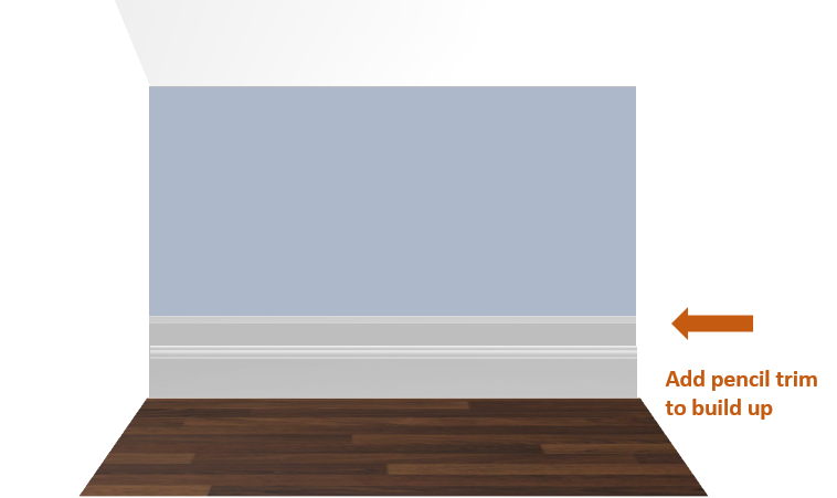 2. Paint the existing trim, the section of wall between the trim and the pencil molding, and the pencil molding itself the same color. The effect is a chunky base trim made with only thin trim and paint.