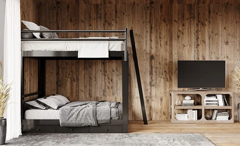Even with its space-saving features, there are still many designs that you can do to maximize the room space even more. But "space-saving" is not only your goal here; you must also focus on aesthetics so that room is spacious and appealing to the eye simultaneously. Bunk beds must possess both of these characteristics, aesthetically pleasing, like hidden flange access doors, and durable, like an iron structure.