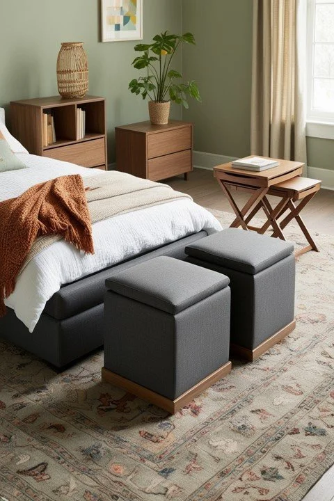 Choose furniture with built-in storage, like ottomans with hidden compartments or beds with drawers underneath.