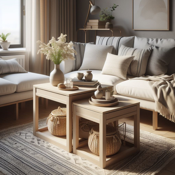 Items like convertible couches and nesting tables may be adjusted to meet changing demands.