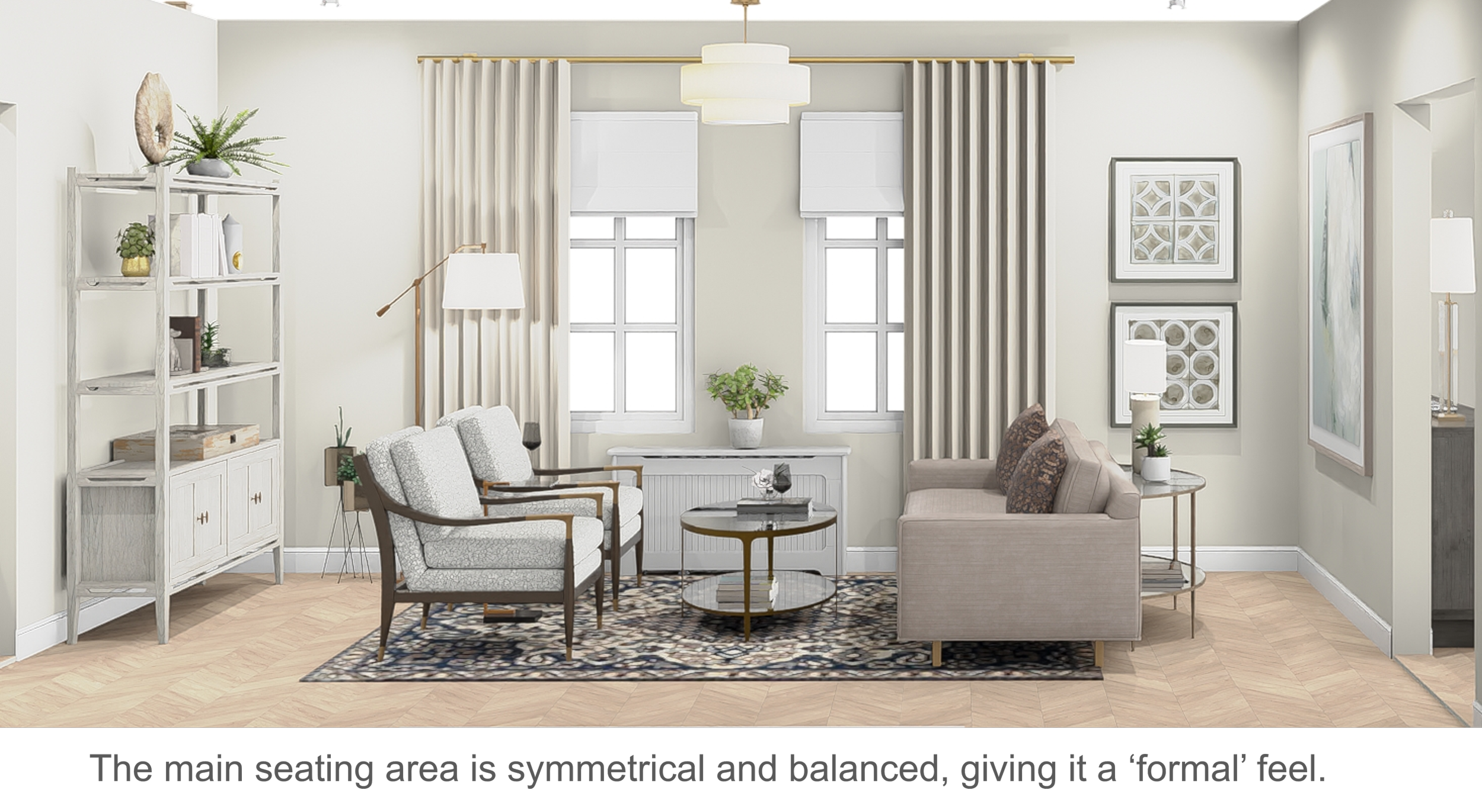 Since my client wanted a ‘formal’ arrangement, I knew that symmetry would play a big part in the for the remaining furniture. The options left was: