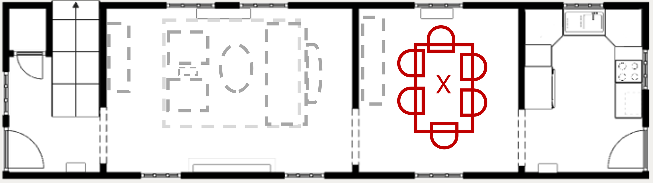 For this room, the doorways form the living room and to the kitchen are parallel, so we’re back to nothing can be placed on that wall.