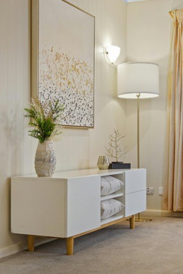 Try placing a sculptural vase on a console or a cluster of different size bowls on a coffee table, these pieces add an organic touch that balances out more structured furniture.