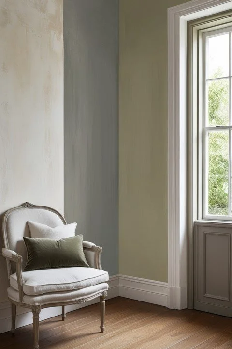 Best for: Narrow rooms that need to feel longer, bedrooms where you want calm without blandness, spaces with good natural light that can handle a hint of color.
