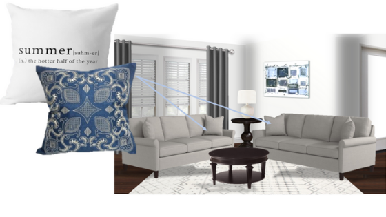 Another way to instantly bring in a cool color scheme for summer is to change up your accessories and other decorative pieces around your room. Switch out your darker colored accessories for lighter colored accessories. Change out your dark wood picture frames for some metal ones. Rose gold, satin nickel or a white painted frame works well too. They’ll instantly brighten up your space.